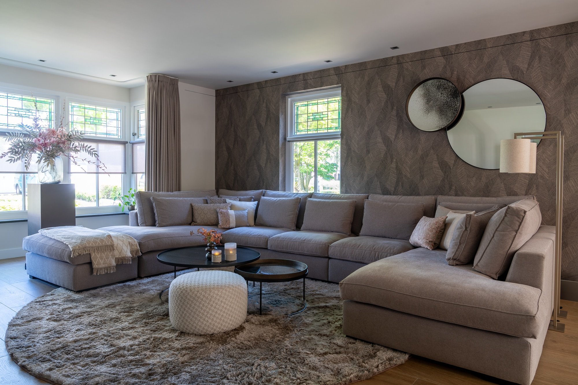 الأريكة هي محور غرفة المعيشة. "أردنا لونًا فاتحًا، يناسب جدارنا الداكن. وسائد الظهر المزدوجة تجعل الأريكة مريحة للغاية. يحتضن الأطفال وإيلكو أنفسهم في الزاوية، وأنا عادةً أجلس على الجانب الأيمن. حتى كلبنا وجد مكانه المعتاد على السجادة الناعمة."