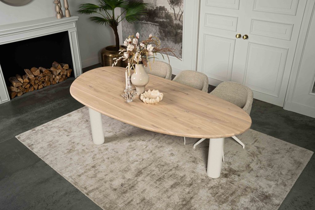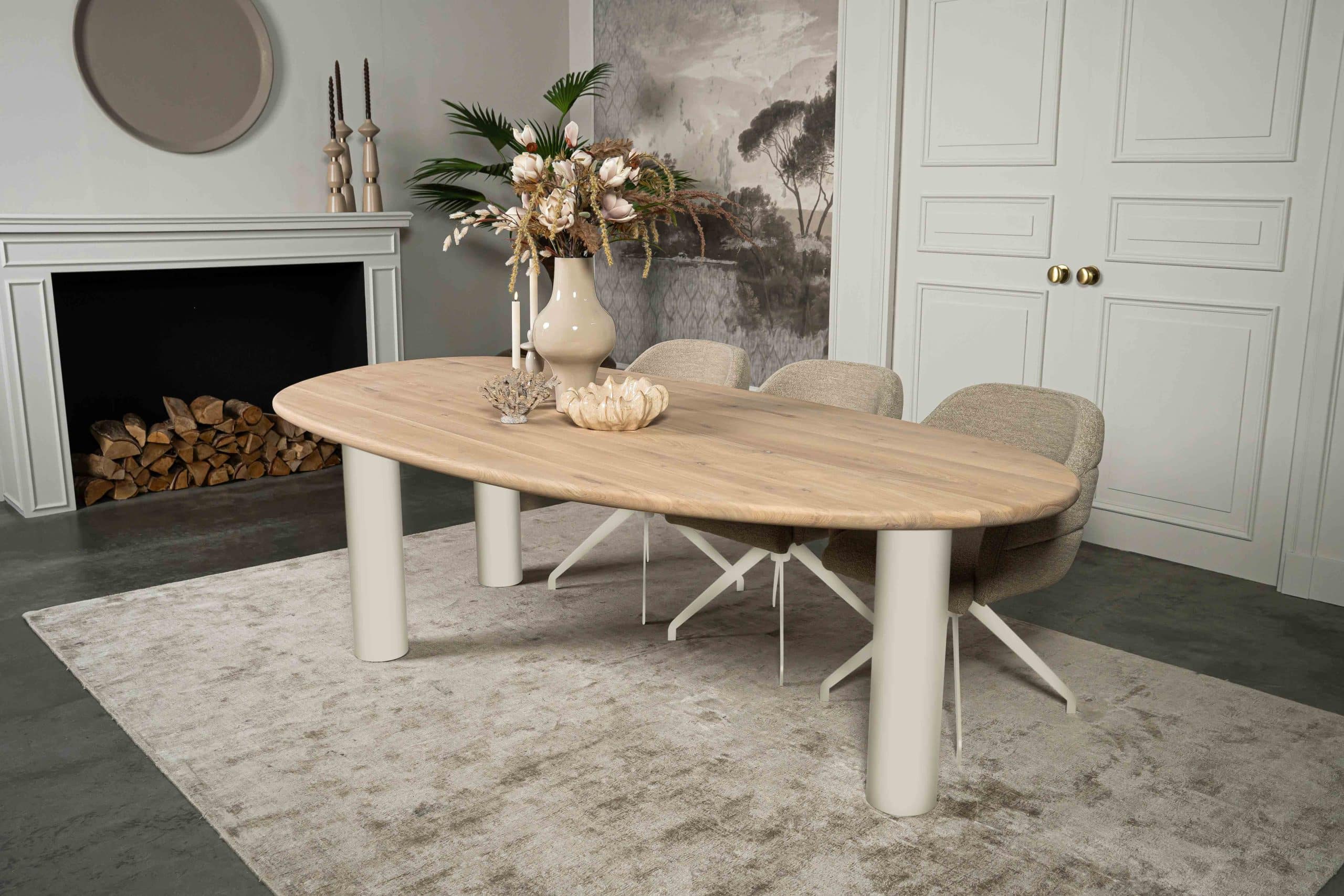 *هذه طاولة من خشب البلوط الريفي تحتوي على ميزات شكلتها الطبيعة. قد تختلف كمية الشقوق والعقد والفروق الدقيقة في الألوان من طاولة إلى أخرى. الطاولات غير المكتملة لم تتم معالجتها، فهي من خشب البلوط الطبيعي. يمكنك اختيار إبقاء طاولتك طبيعية تمامًا أو معالجتها بالزيت أو الورنيش. الطاولات التي قمنا بتلوينها مطلية وبالتالي فهي محمية بشكل مثالي ضد الرطوبة والأوساخ من الخارج.