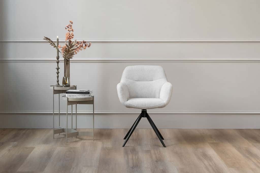 Ons voorraad model is uitgevoerd in de stof Gear Shell 196 met pootkleur Black, welke gemiddeld binnen 4 weken geleverd kan worden. Wil je de eetkamerstoel graag in een andere stof of met een andere pootkleur uit laten voeren? Dat kan! De gemiddelde levertijd zit dan op 12 weken.