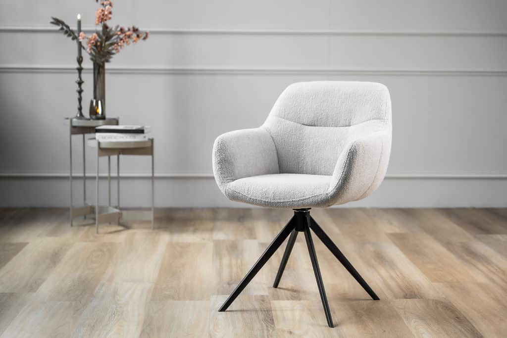 Eetkamerstoel Arthur by Gusj is perfect als je op zoek bent naar een tijdloos model met extra details. De stiknaden die verticaal over de rug lopen maken de stoel extra speciaal. Je kunt kiezen uit 22 van onze favoriete stoffen en 3 kleuren poot. De stalen poot geeft de stoel zijn moderne look en heeft een 360° auto return.