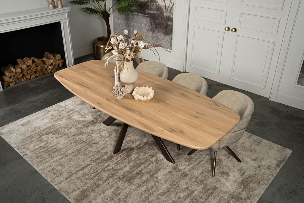 *De getoonde vanafprijs geldt voor de eettafel Montpellier met bladdikte 4 cm, bladafwerking recht, houtselectie B en pootkleur zwart. De prijs van de eettafel op de getoonde afbeelding kan hoger uitvallen dan de weergegeven vanafprijs.