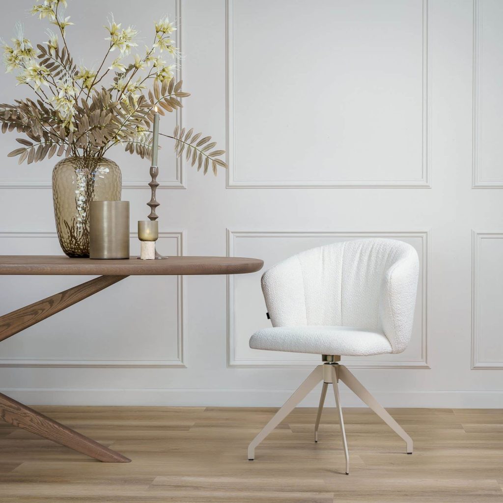 Vneste do svého domova jedinečnou kombinaci pohodlí a stylu s jídelní židlí Cooper od Gusj. S elegantním vertikálním prošíváním, které vytváří efekt rafinované mušle. Můžete si vybrat z 22 našich oblíbených látek! Ocelová noha (které si můžete vybrat ve 3 různých barvách) dodává židli moderní vzhled a má 360° automatický návrat.