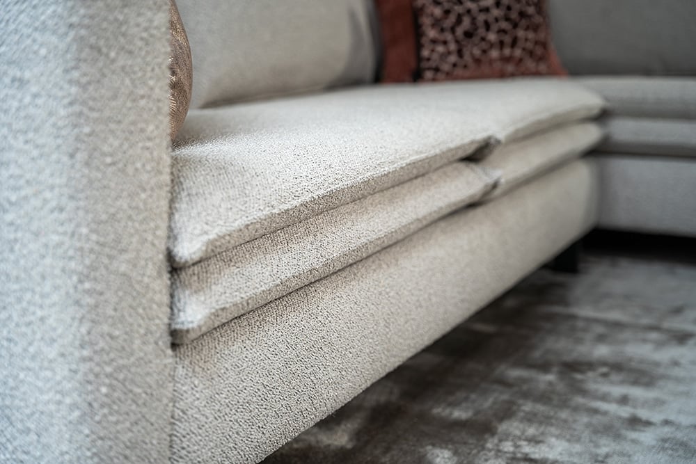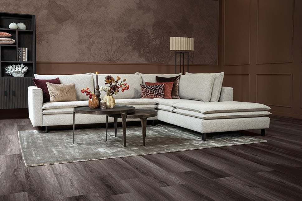 Rohová pohovka Nadine je výjimečná díky dvojitým opěradlům a sedákům. Protože jsou tyto dvojité polštáře připevněny k sobě, nepůsobí nepořádně a zůstávají na svém místě. To v kombinaci s francouzským prošíváním a vysokými černými nohami dělá z Nadine multifunkční model, který lze využít v různých stylech bydlení. Vzhledem k prostorným sedadlům je pohovka Nadine také velmi pohodlná. Skutečný poutač ve vašem obývacím pokoji!