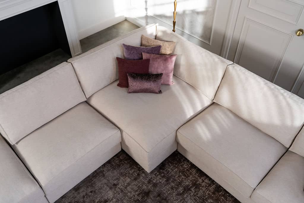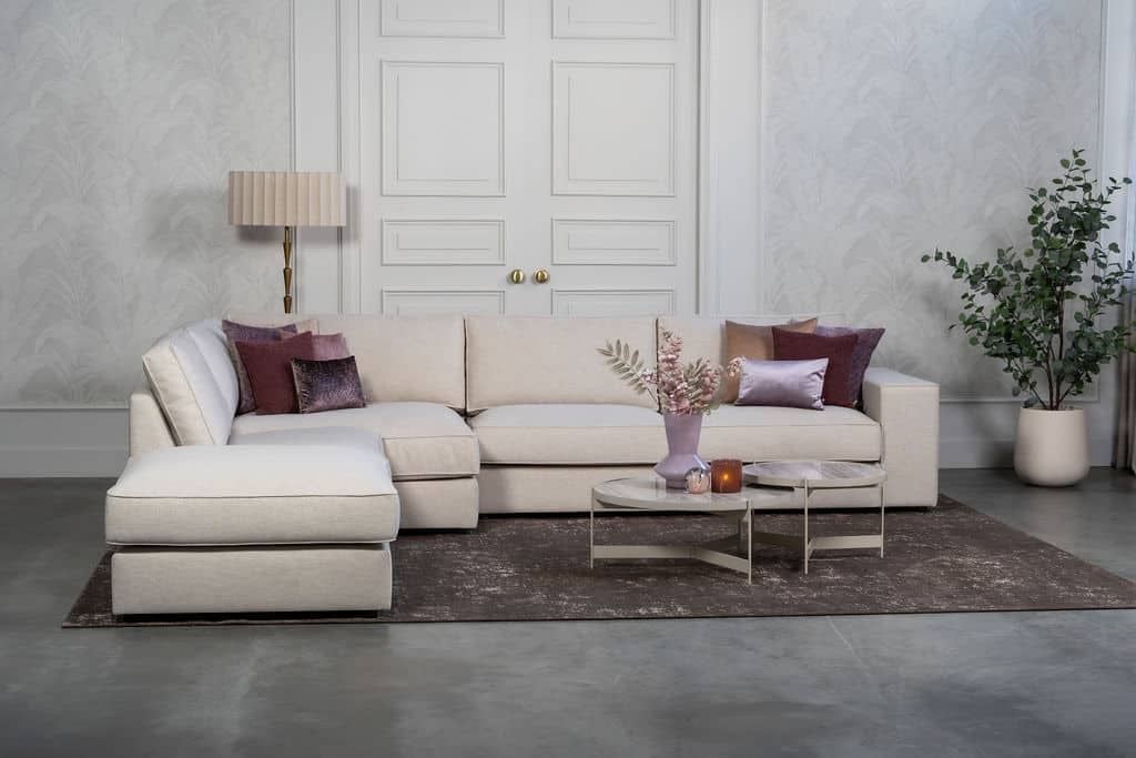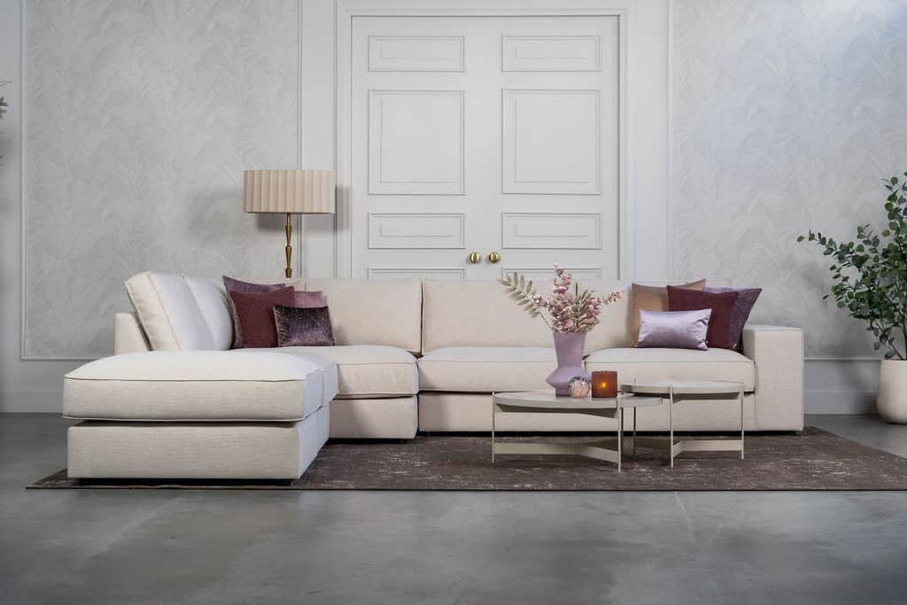 Rohová sedací souprava Noëlle je zde vybavena velkým rohem.