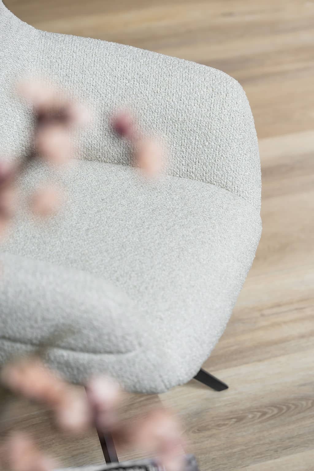 Unser Lagermodell besteht aus dem Stoff Rhythm Natural 01 mit schwarzer Beinfarbe und kann durchschnittlich innerhalb von 4 Wochen geliefert werden. Sie möchten den Esszimmerstuhl in einem anderen Stoff oder mit einer anderen Beinfarbe? Das ist möglich! Die durchschnittliche Lieferzeit beträgt dann 12 Wochen.