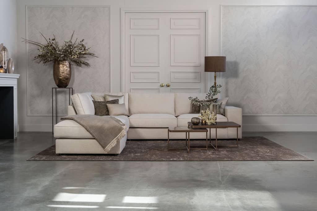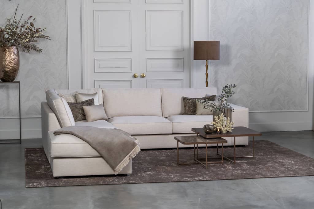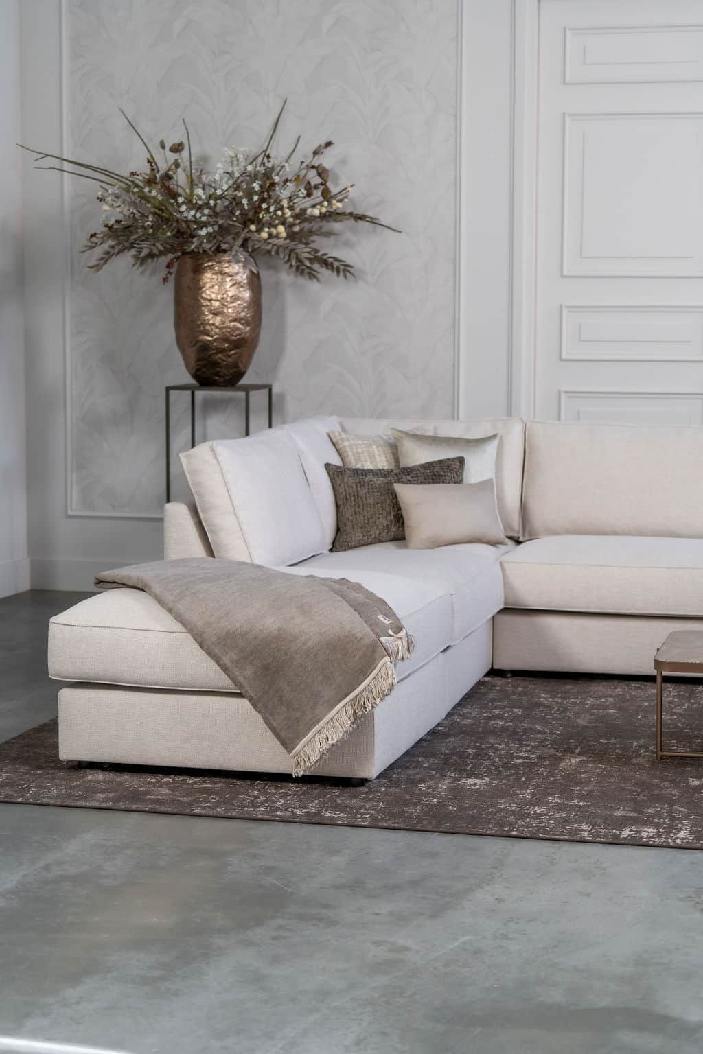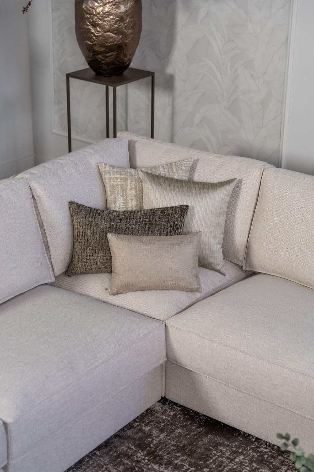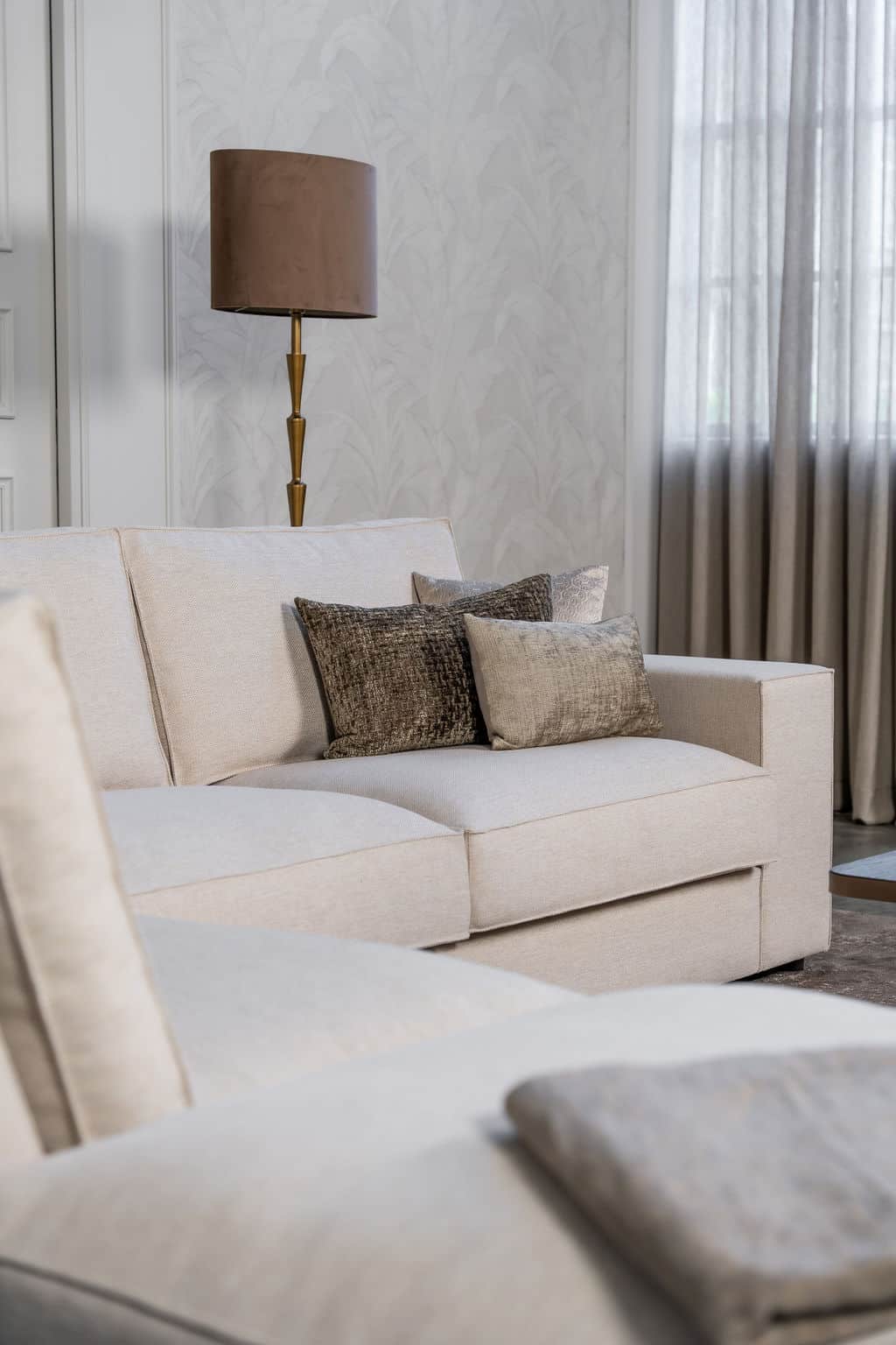 Corner sofa Noëlle has a sturdy look and offers optimum seating comfort. Thanks to the wide armrests, the slightly convex & well-filled seat cushions and the French stitching around the seat and back cushions, the sofa has a modern and robust look. The back cushions are available in two styles: a flat version or one with a horizontal stitching in the middle, so that you can tailor the sofa to your personal taste. You can choose from a wide range of fabrics from our collection, so that the sofa fits perfectly into your interior. The deep seat and the extra thick seat cushions ensure a firm and comfortable seating experience, which encourages you to adopt an active sitting position. Corner sofa Noëlle is the perfect combination of style, comfort and versatility, and therefore ideal for a contemporary and practical seating area in your home.