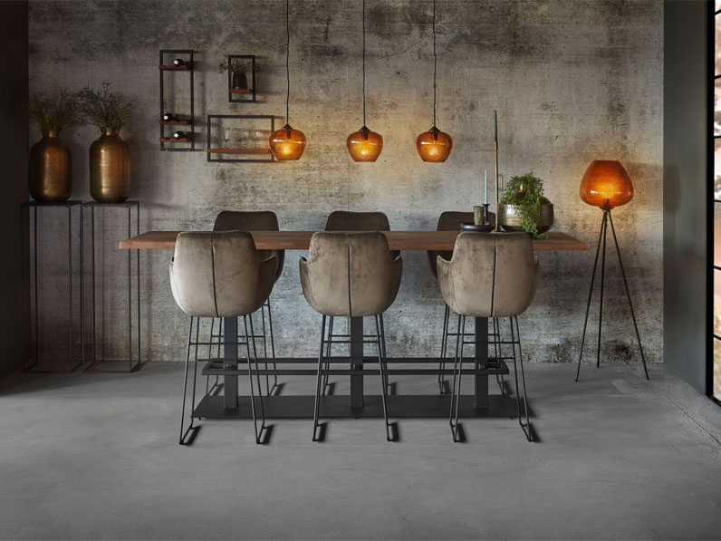 The 2nd bar table as in the photo has a metal leg, the dimensions are 200 x 100 x 109 cm, a top of 4 cm thick and costs €1926.