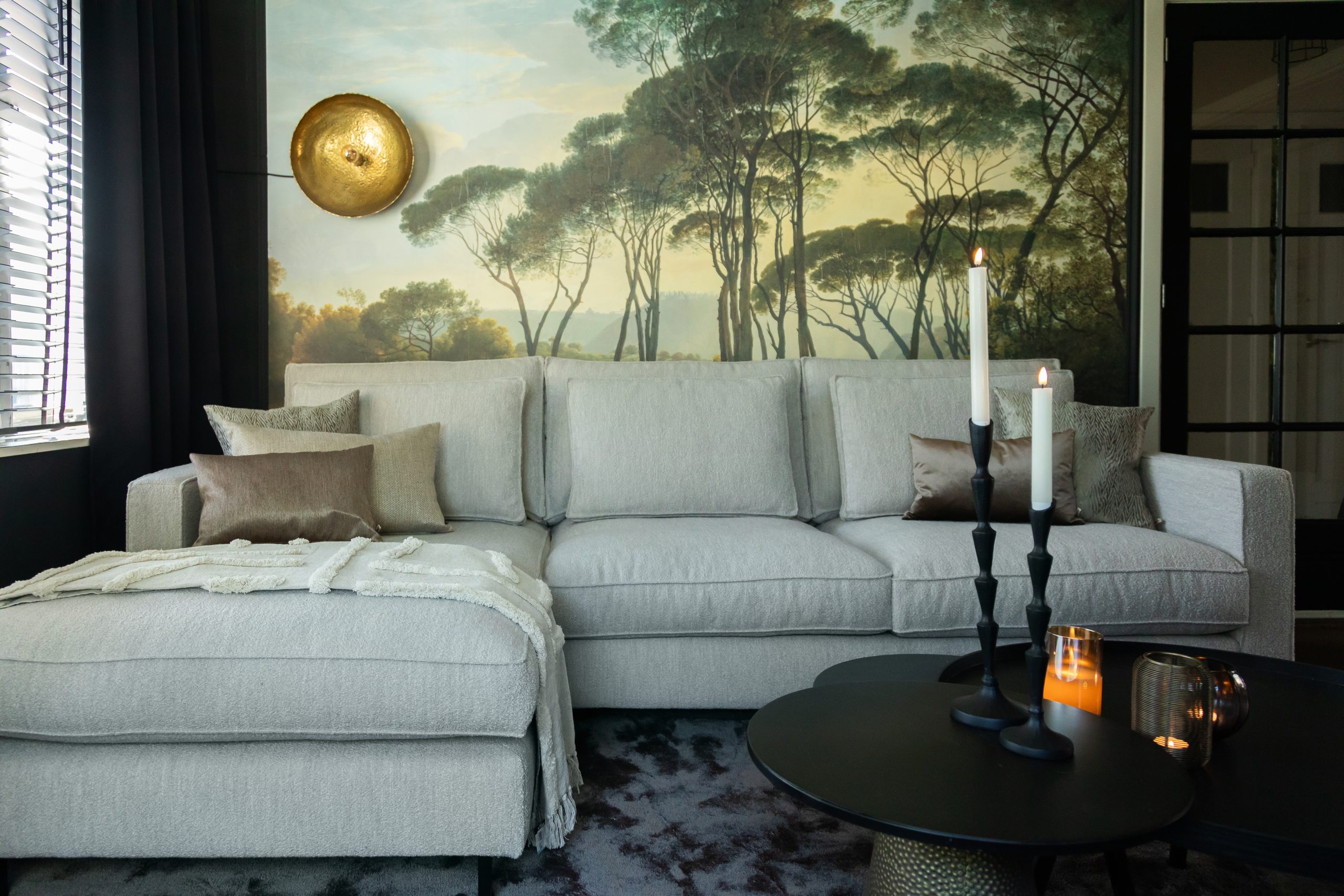 Joyce omschrijft haar interieur niet echt als een specifieke woonstijl. “Ik vind het bij mezelf ook moeilijker om te zeggen”, legt ze uit. “Als ik ergens binnenkom, dan kan ik meteen zeggen: dit is eclectisch of modern. Bij mij is het niet modern of landelijk, maar er zitten wel elementen in van beide woonstijlen. Een echte combinatie dus. Zelf zou ik het ‘light, cosy, lounge en warm’ noemen, een hele mond vol!”. We moeten toegeven, we snappen wat ze bedoelt. De woning heeft meteen al als je binnenkomt een warme en sfeervolle uitstraling. Met de woonkamer als knusse hoek en een prachtige hoekbank die je meteen ziet als eyecatcher.