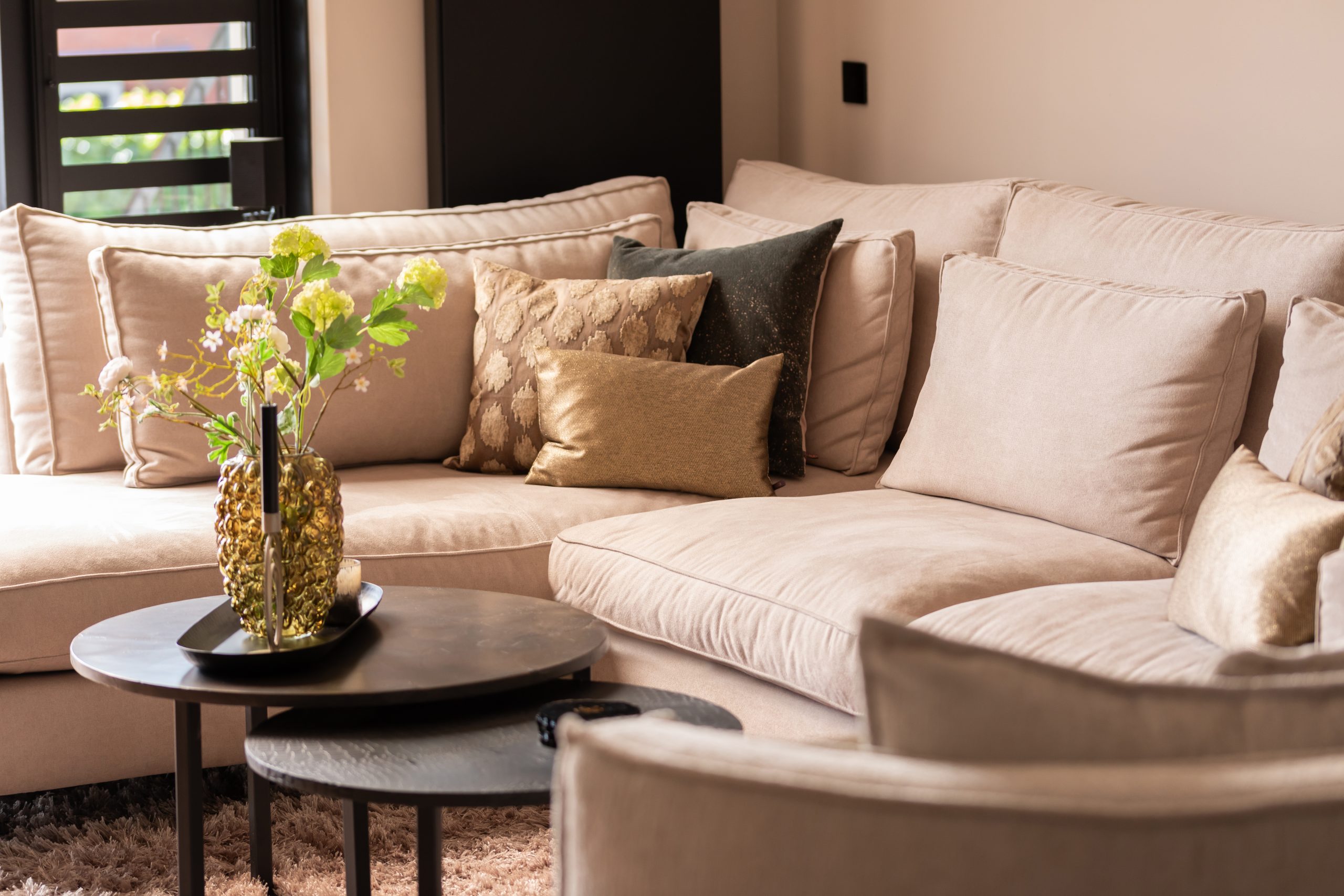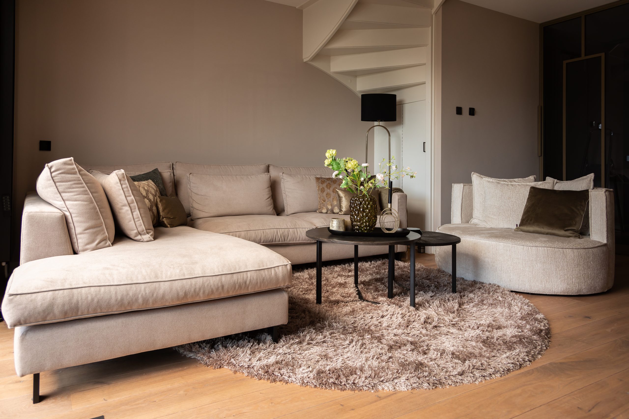 En toen waren de meubels aan de beurt! “Ik zag een foto van deze bank voorbij komen op Instagram. Ik was meteen verliefd! We hebben alleen voor een andere stof en kleur gekozen, dat paste beter bij ons!” In de woonkamer van Priscilla staat de prachtige hoekbank Gigi in Mine Shell die zij kocht bij de brandstore in Rotterdam. Ze is er erg tevreden over en zit het liefst languit in de lekkere hoek van deze bank! “Room108 Rotterdam is een prachtige winkel, helemaal mijn stijl! Het was ook allemaal erg vrijblijvend, ik had niet het gevoel dat ik er iets móest kopen. Dat was erg fijn!”. Uiteindelijk ging ze, naast de hoekbank, ook met loveseat Adèle de deur uit. En die maakt de zithoek helemaal af!