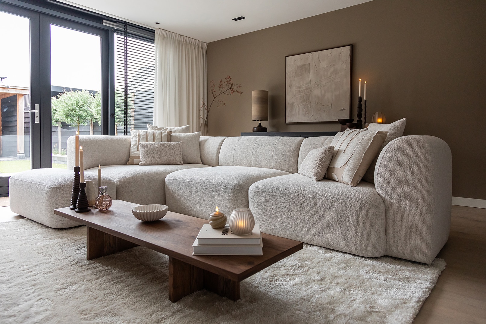 Binnenkijken in het japandi interieur van Jenny, met lichte beige hoekbank Emanuelle.