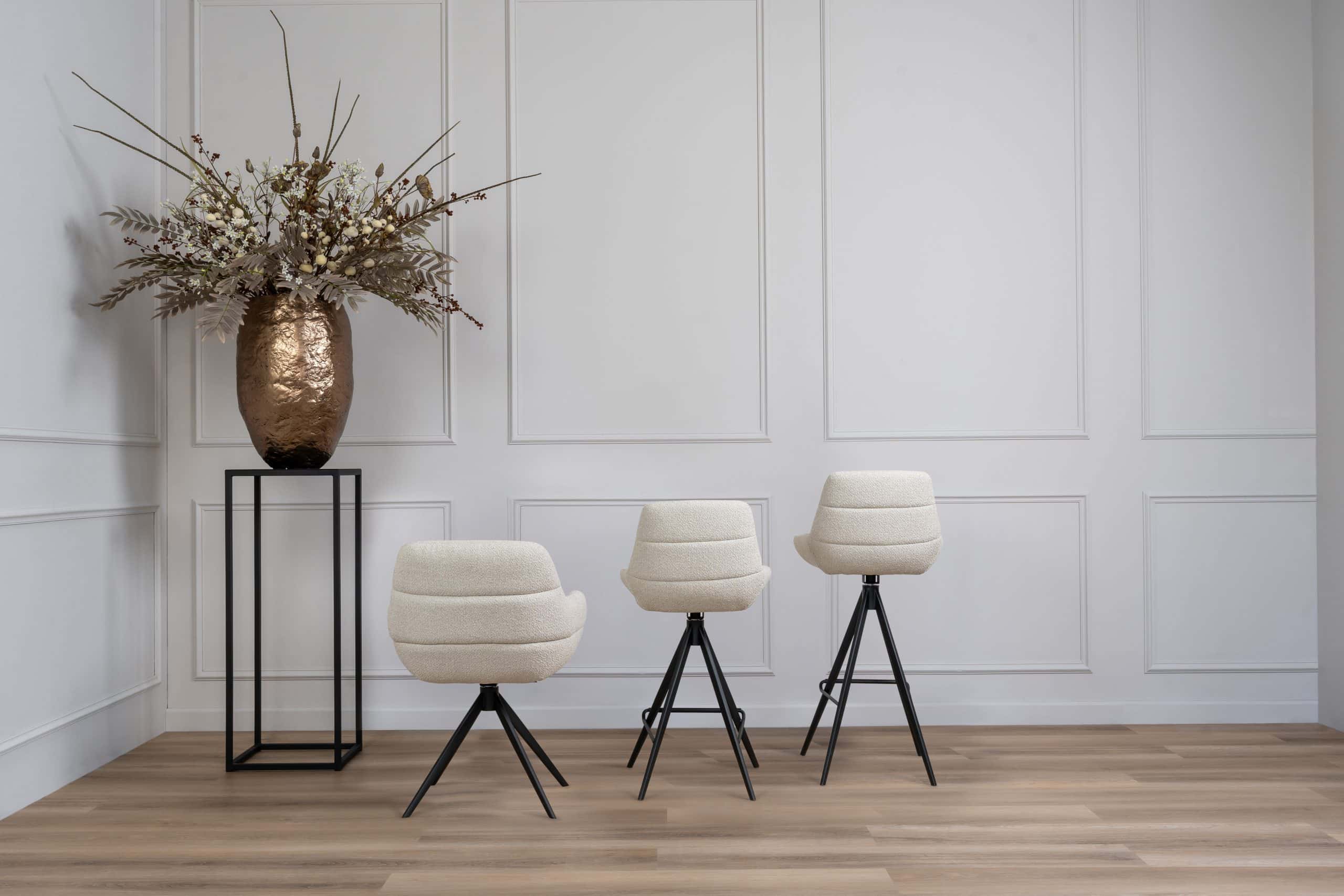 Voor een tijdloze uitstraling kun je kiezen voor barkrukken in warme, neutrale tinten als taupe, grijs of zand. Deze veelzijdige basis past moeiteloos bij verschillende interieurstijlen en kun je gemakkelijk opfrissen met seizoensgebonden accessoires voor een nieuwe look.