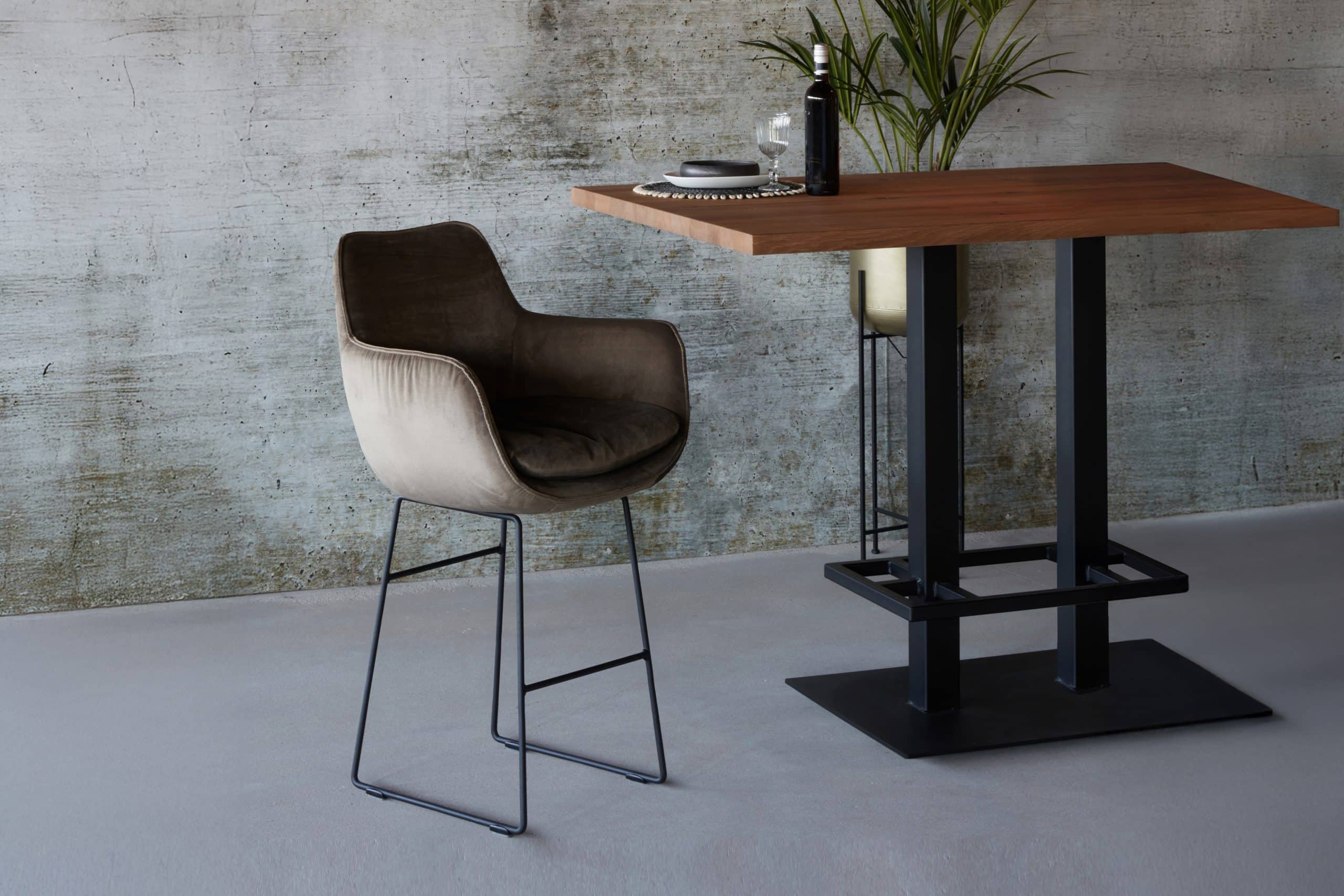 Barkruk Max is ook leverbaar met een zwart metalen X-poot.