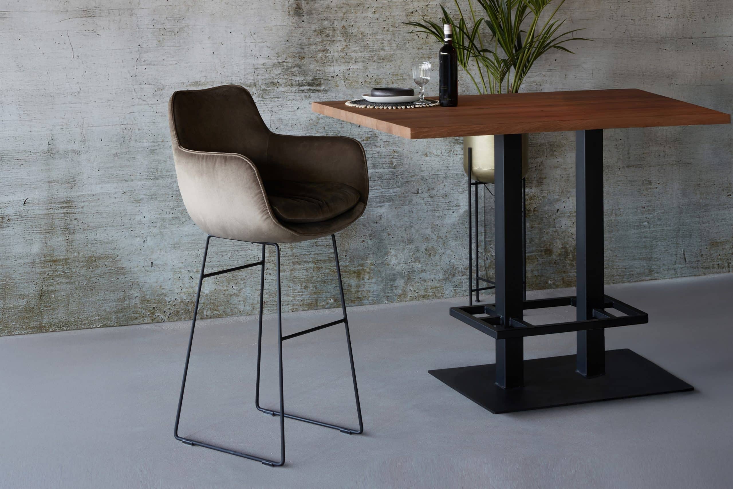 Barkruk Max is ook leverbaar met een zwart metalen X-poot.