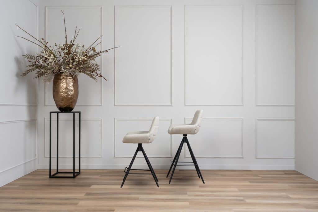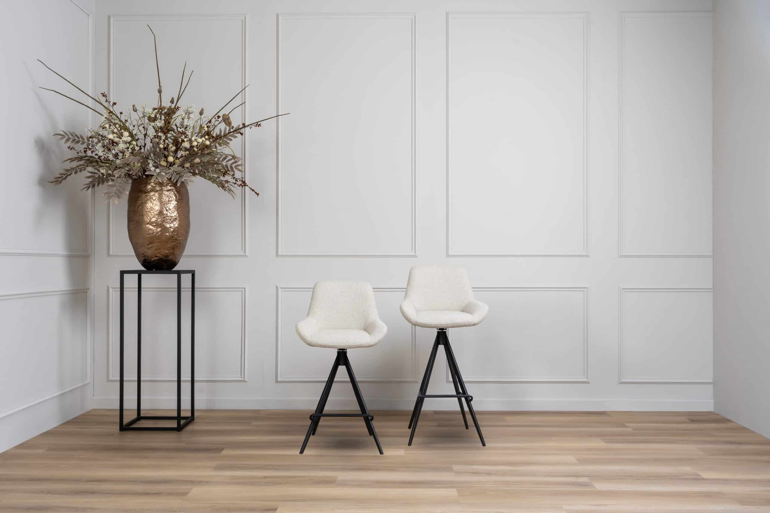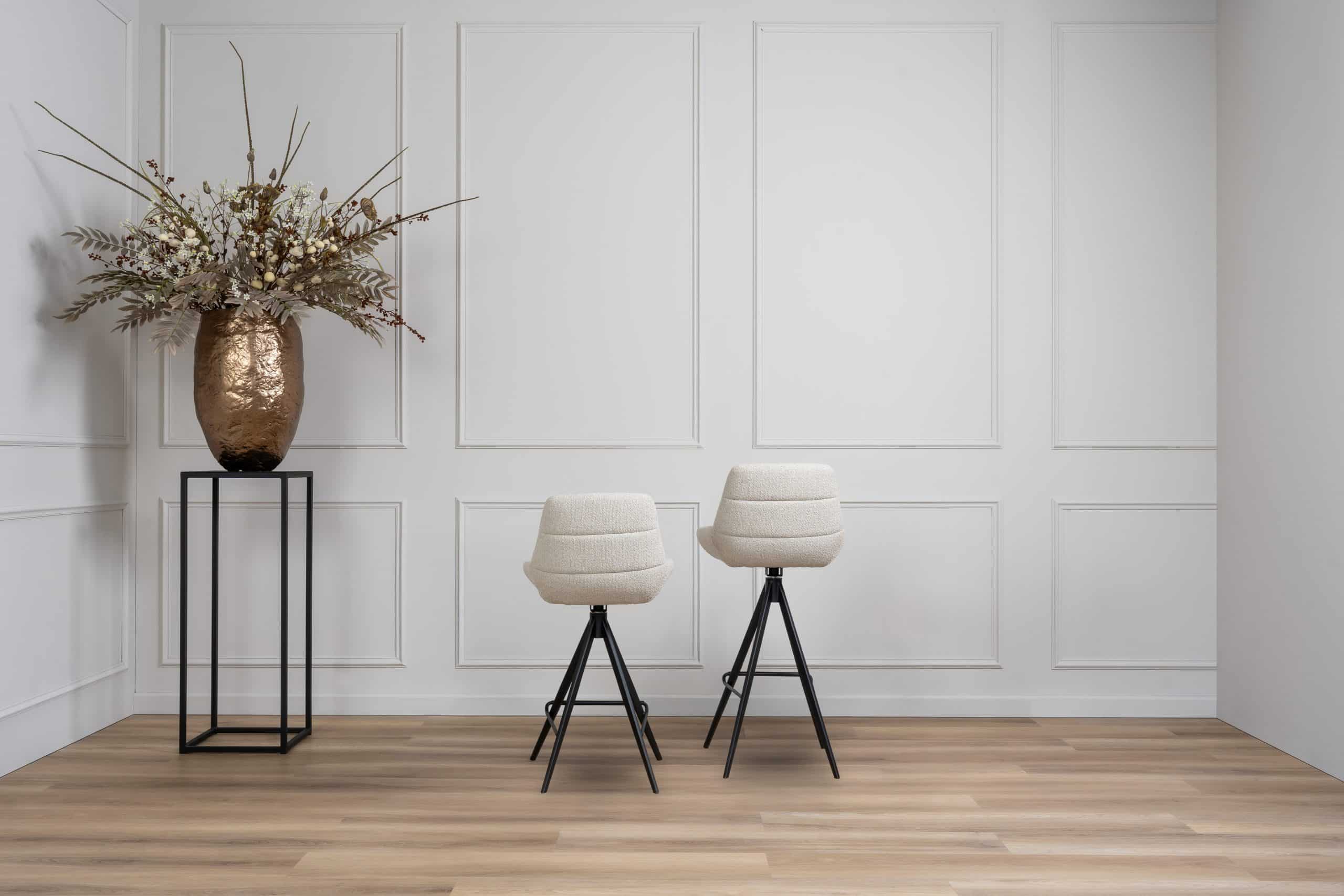 Maak je eetkamer compleet met de barkruk Oliver, ontworpen als perfecte aanvulling op onze eetkamerstoel Oliver. Deze barkrukken zijn verkrijgbaar in dezelfde stof- en pootkleuren als de eetkamerstoelen by Gusj, wat zorgt voor een stijlvolle look voor je hele interieur. Dankzij de innovatieve draai- en terugdraaifunctie biedt de Oliver barkruk gebruiksgemak en comfort: hij keert na gebruik altijd terug naar zijn oorspronkelijke positie. Bovendien is de kruk verkrijgbaar in twee verschillende hoogtes, zodat je hem perfect kunt afstemmen op je keuken of bar. Let op: deze barkrukken kunnen alleen per set van twee worden besteld. De getoonde prijs is per barkruk.