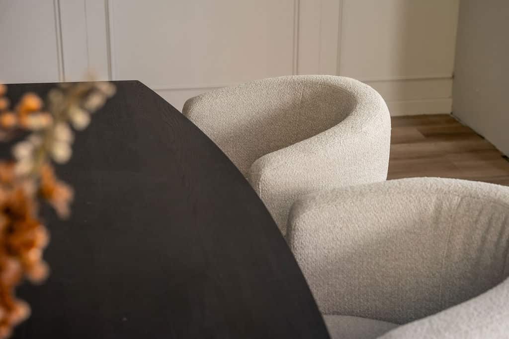 Ben je op zoek naar mooie eetkamerstoelen? Hierbij presenteren wij Daley 1! Deze eetkamerstoel biedt ongekende luxe en comfort, zodat je heerlijk urenlang kunt tafelen met familie en vrienden. Je hebt de keuze uit 3 verschillende afwerkingen voor de rugleuning, de Daley 1 is afgewerkt zonder stiknaden op de rugleuning én er is ook een bijpassende eetkamerbank! Hier uitgevoerd in de stof Rhythm Natural 01, maar natuurlijk stel je de stoel zelf samen en heb je keuze uit alle stoffen en kleuren uit onze uitgebreide stoffencollectie.