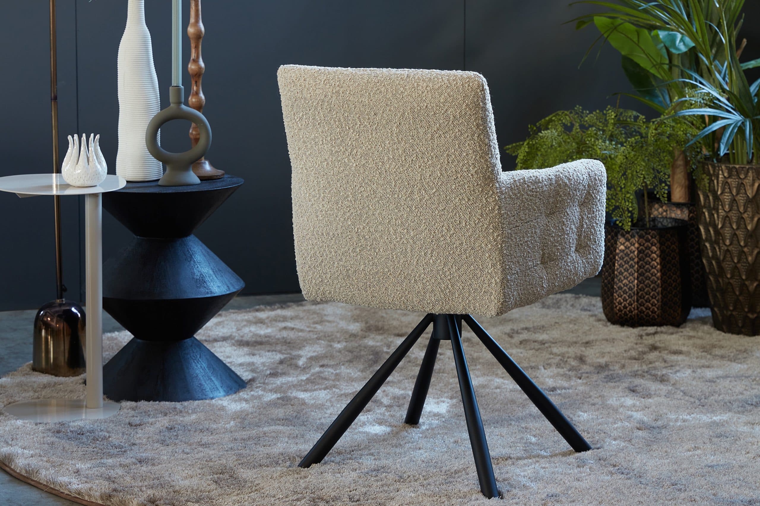 Chique maar toch stoer, dat is de perfecte beschrijving van eetkamerstoel Joshua. De gecapitonneerde zijkanten geven eetkamerstoel Joshua een klassieke en chique uitstraling. De x-poot zorgt ervoor dat het model ook een stoere look heeft. Joshua staat goed in iedere interieurstijl en met keuze uit meer dan 700 verschillende stoffen maak je hem helemaal naar je eigen wens!