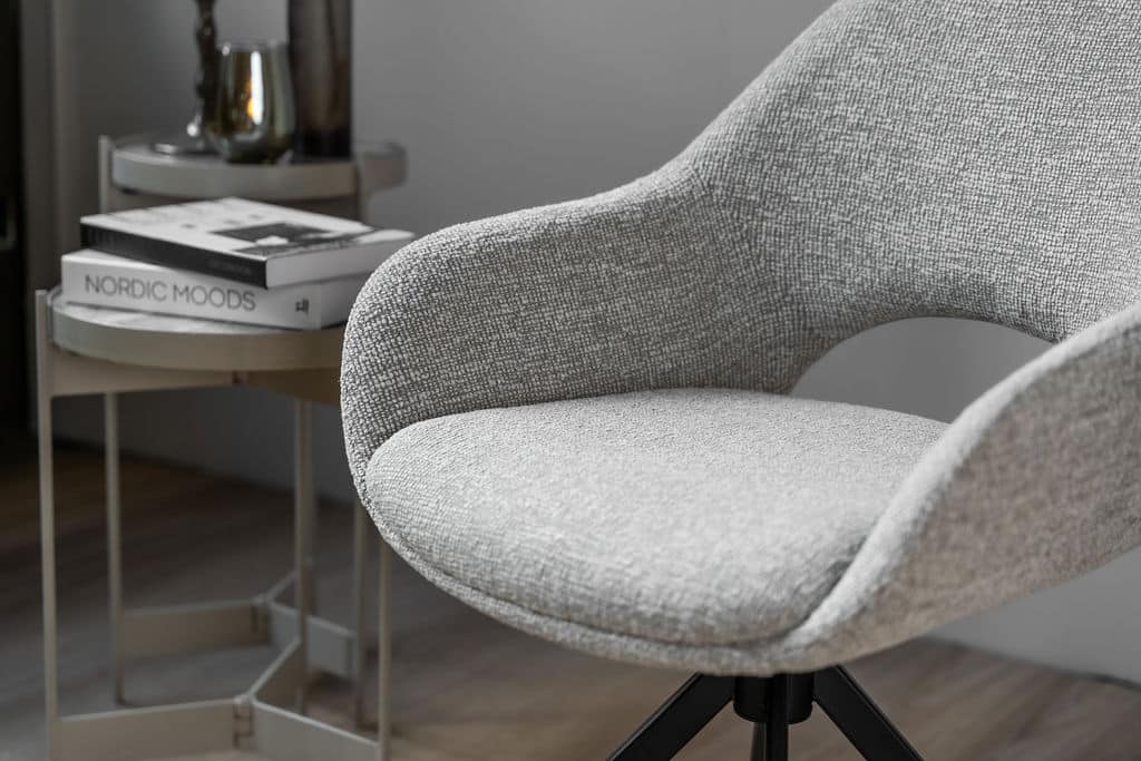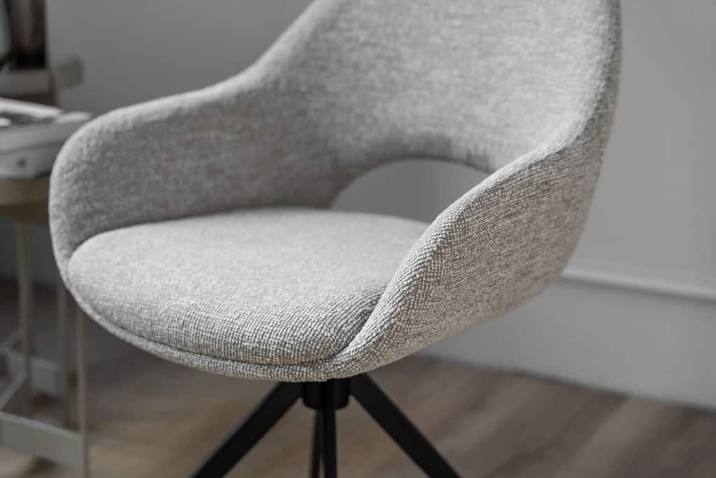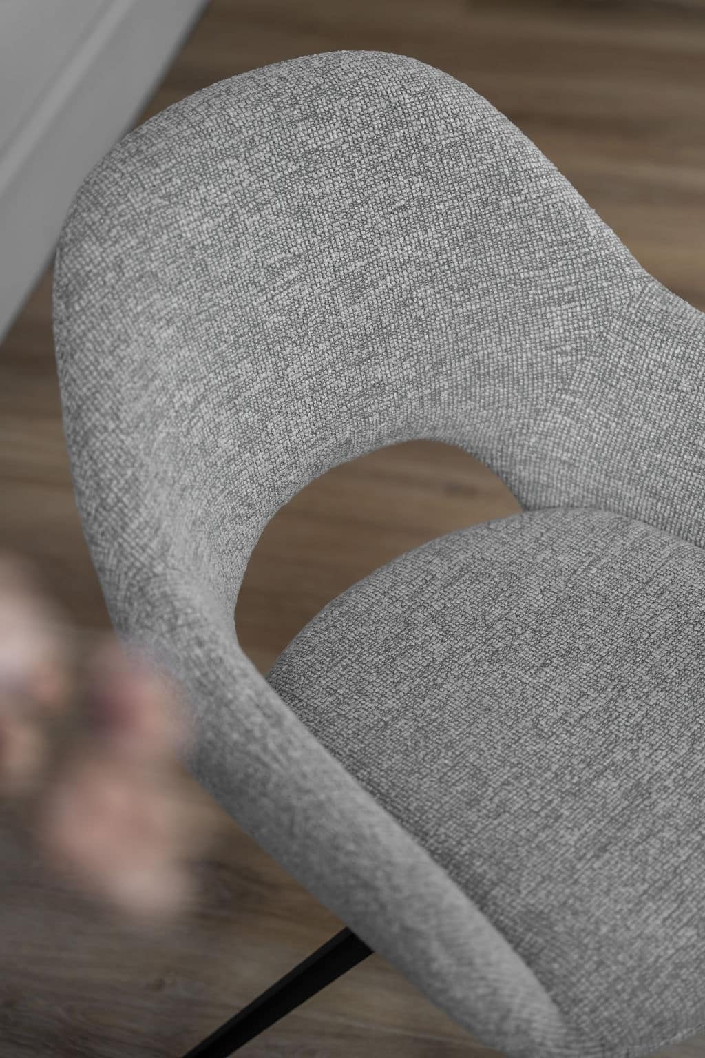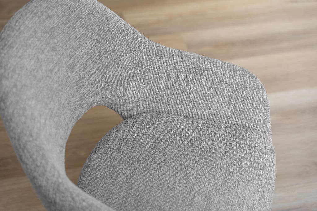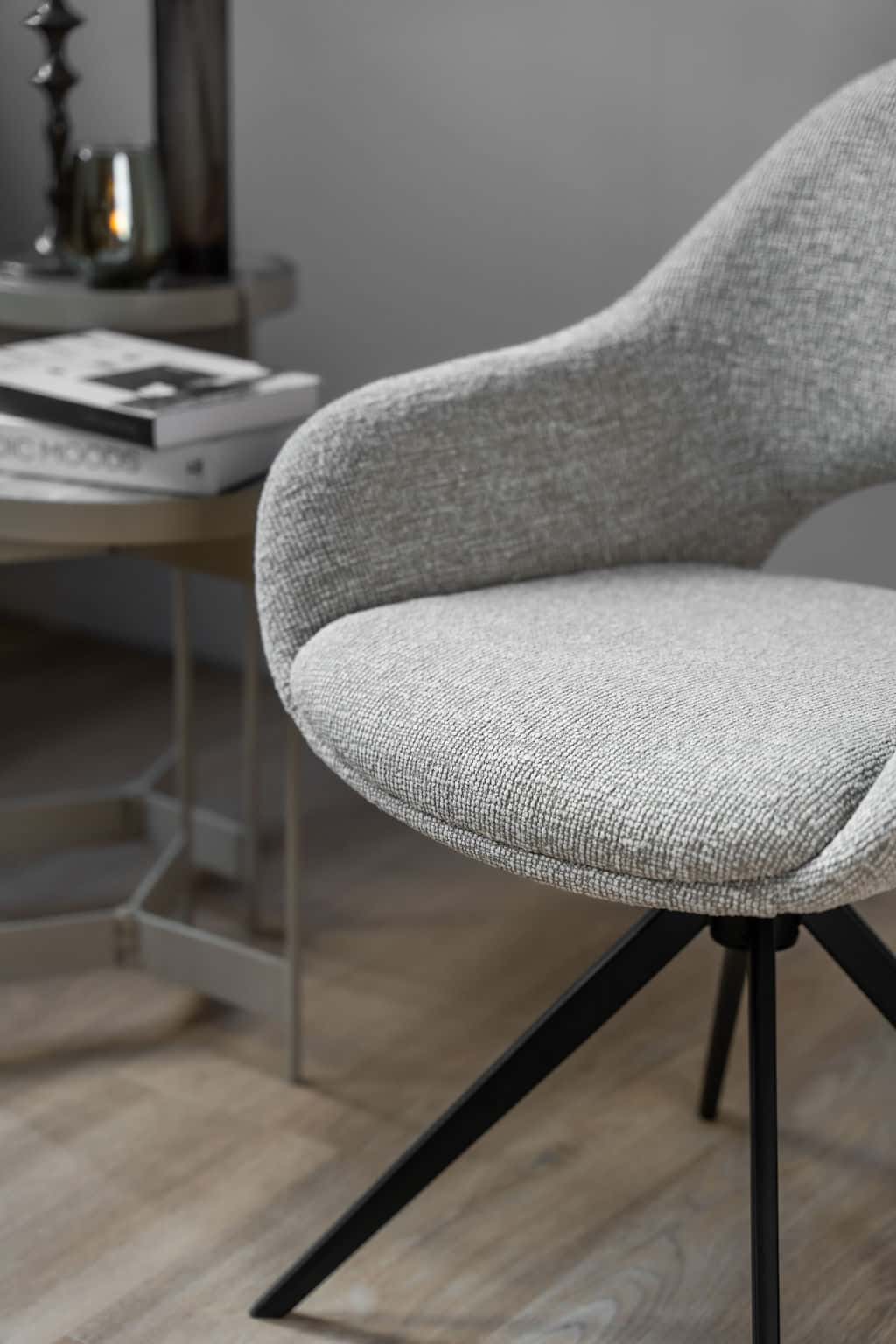 Eetkamerstoel Riley heeft een trendy uitstraling. De decoratieve opening bij de kuipzitting maakt de stoel extra bijzonder, maar zorgt ook voor een aangenaam zitcomfort. U kunt kiezen uit 22 van onze favoriete stoffen! De stalen poot geeft de stoel zijn moderne uitstraling en heeft een 360° auto return. De poot is te kiezen in 3 verschillende kleuren.